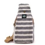 This body cross bag, crafted from natural cotton in a striking black & white colourway, blends urban edge with eco-conscious materials. Featuring a versatile and durable nylon strap, it offers both style and practicality for the fashion-forward individual who values sustainability.